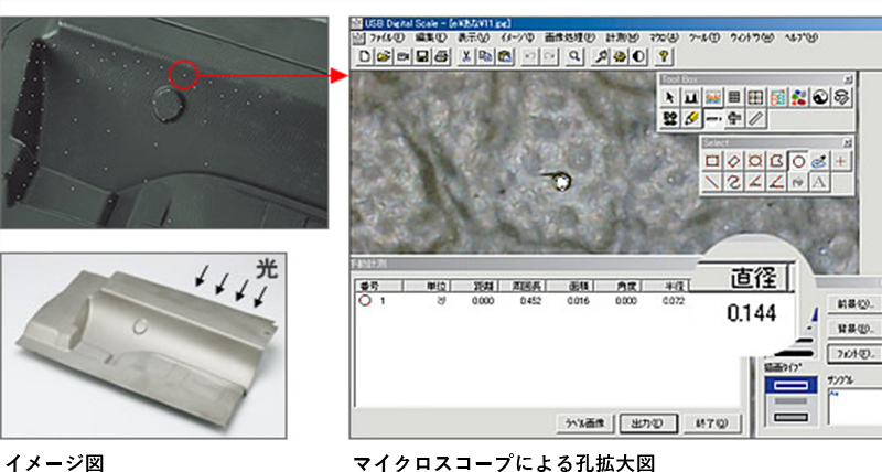 金型の望みの部位に孔を開けることで、さらに精細な転写や、